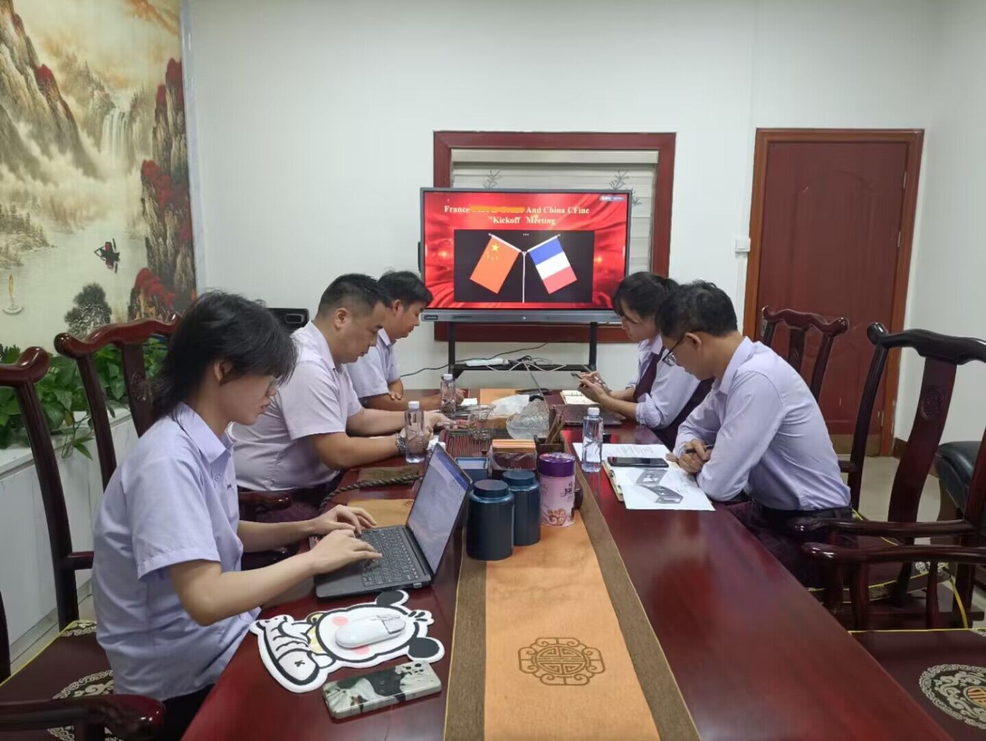 與法國客戶視頻會議